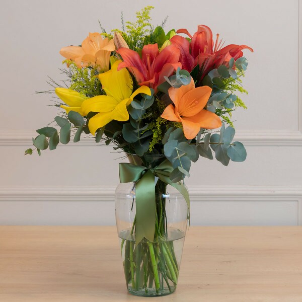 Obs.: As cores dos lírios podem variar de acordo com a disponibilidade. Verifique junto aos nossos atendentes as cores disponíveis.