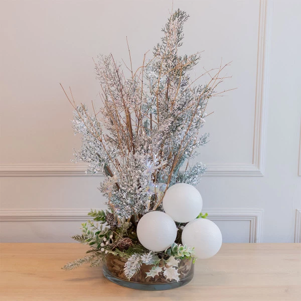Ideal para salas, aparadores, mesas de centro, recepções e ambientes corporativos, ele traz charme e requinte à decoração natalina, dispensando montagem e garantindo praticidade para quem busca um ambiente sofisticado com clima festivo.