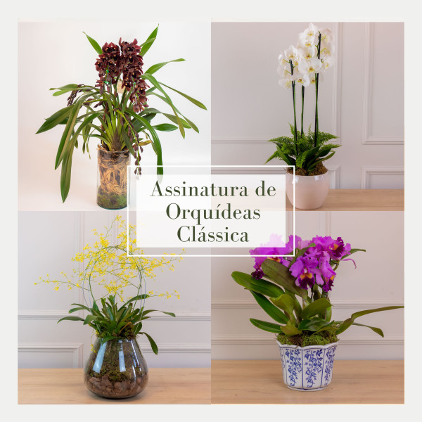 Se você aprecia orquídeas mais imponentes, a Assinatura de Orquídeas Clássica é ideal. Com vasos maiores, essa assinatura inclui não só as orquídeas clássicas Phalaenopsis, Cymbidium, Dendrobium e Denphal, mas também outras variedades impressionantes, como a Cattleya, Chuva de Ouro e Sherry Baby. A cada reposição, você receberá orquídeas que harmonizam perfeitamente com qualquer ambiente, adicionando um toque de sofisticação. Escolha a reposição semanal, quinzenal ou mensal e tenha sempre a opção de flores mais duráveis ou uma diversidade de espécies, conforme a estação.