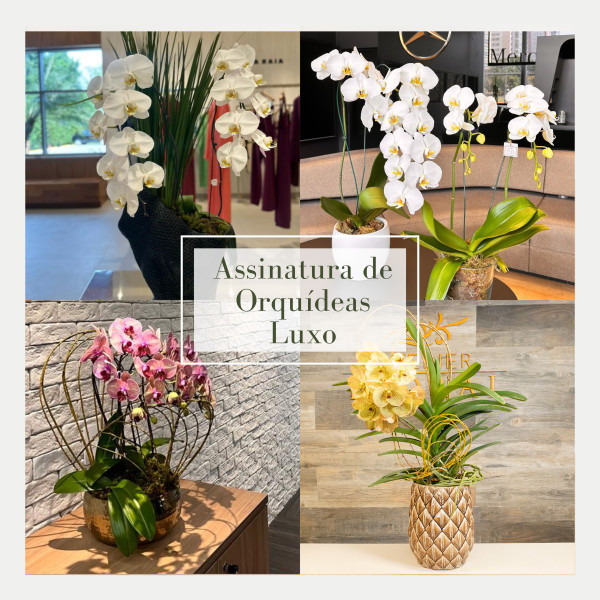 Para quem busca requinte e presença marcante, a Assinatura de Orquídeas Luxo é a escolha perfeita. Essa assinatura oferece orquídeas de tirar o fôlego, com opções como o majestoso vaso de orquídea cascata grande com duas ou mais hastes, orquídeas Vanda de beleza única, ou até mesmo um conjunto de duas orquídeas Clássicas. É a assinatura ideal para quem deseja transformar grandes espaços com exuberância e sofisticação. Com reposições semanais, quinzenais ou mensais, você pode optar por orquídeas de longa durabilidade ou experimentar diversas espécies ao longo do ano, sempre adaptadas à sazonalidade.