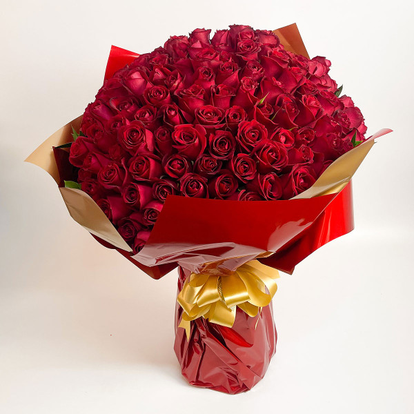Magnífico e grandioso buquê composto por 150 rosas vermelhas.