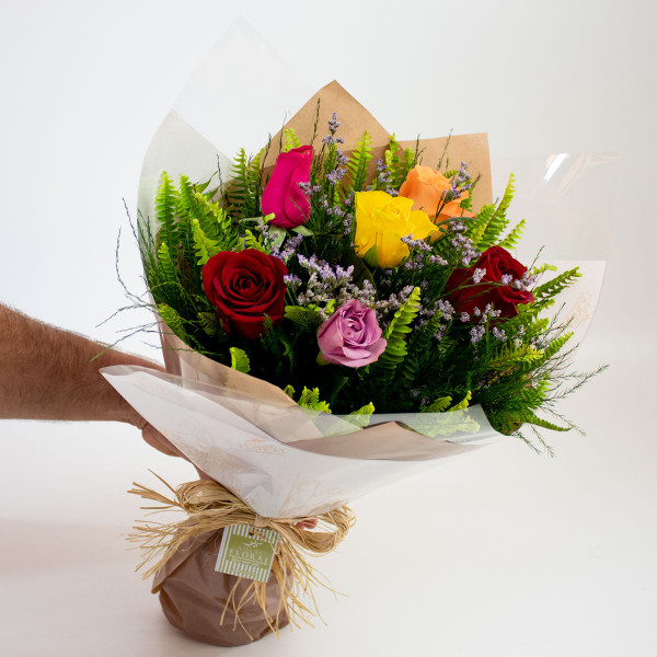 Buquê de 6 Rosas Nacionais - Em Tons Intensos