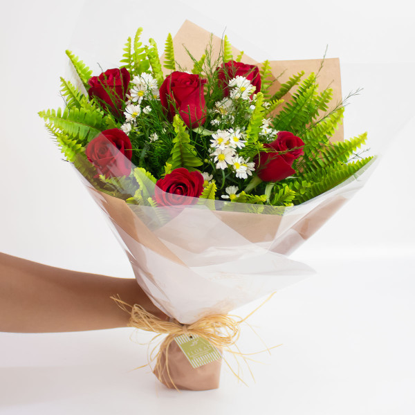 Compartilhe: Buquê de 6 Rosas Nacionais - Vermelho Ref.: 2020988 *Deseja enviar uma mensagem? Não Sim *De: Número Máximo de Caracteres: 60 *Para: Número Máximo de Caracteres: 60 Mensagem do Cartão: Número Máximo de Caracteres: 1200 * Campos Obrigatórios R$139,00 ou 4x de R$34,75 s/ juros unid. Comprar Outras formas de pagamento Calcule seu Frete preços e prazos de entrega Enviar Não sei meu CEP! Detalhes do Produto Lindo e tradicional buquê composto por 6 rosas nacionais e folhagens da estação embalado no papel com laço de ráfia.