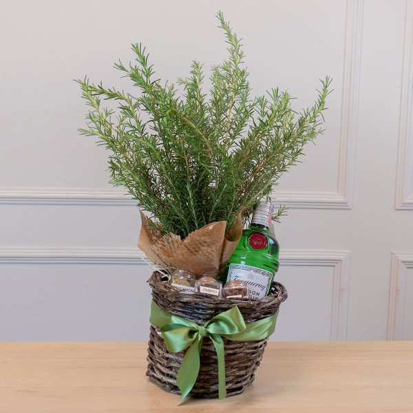 A Cesta Gin Tanqueray com Especiarias e Buquê de Alecrim é perfeita para quem aprecia drinques bem elaborados e momentos especiais.