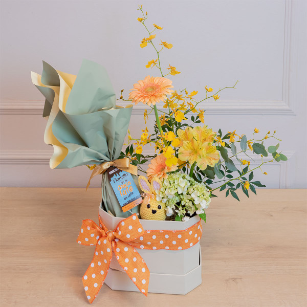Dica de Especialista: Por se tratar de um arranjo com flores naturais e itens artesanais, a Box Spring é uma edição limitada. Garanta uma Páscoa mais florida e saborosa!