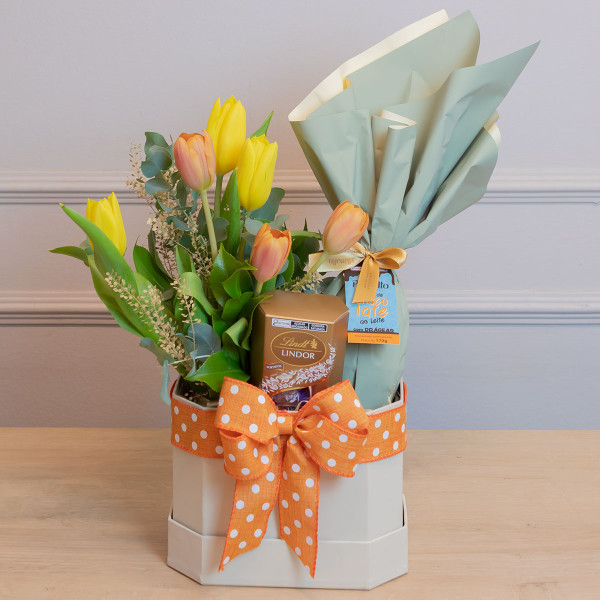 O Combo Box Luxo Chocolate é a escolha definitiva para os verdadeiros apreciadores de cacau. Esta composição exclusiva destaca a elegância das nossas tulipas em tons pastel em uma apresentação de tirar o fôlego, acompanhada por uma seleção rigorosa de chocolates: o toque crocante das drágeas Planalto e a cremosidade inconfundível dos bombons Lindt.