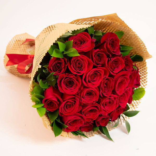 Clássico e charmoso ramalhete composto por 24 de rosas importadas envoltas por folhagens da estação. Esse buquê é enviado em uma sofisticada embalagem com papel celofane, papel de seda e fita de cetim. Um encanto de presente!