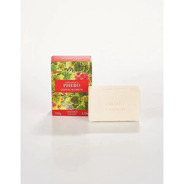 O Sabonete em Barra Phebo Gerânio Bourbon 100g é um sabonete cremoso com base vegetal, enriquecido com manteiga de murumuru, que hidrata e nutre a pele sem agredir. Com alta concentração de fragrância, proporciona uma perfumação prolongada. Sua assinatura olfativa combina notas de rosa com nuances aromáticas e verdes, resultando em uma experiência sofisticada e refrescante.